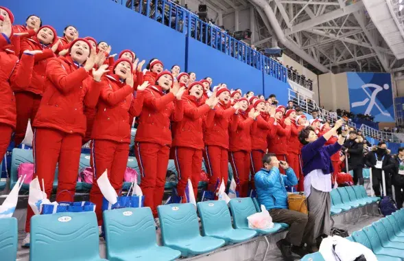 Балельшчыцы з КНДР на Алімпіядзе арганізавана ходзяць нават у прыбіральню. Відэа