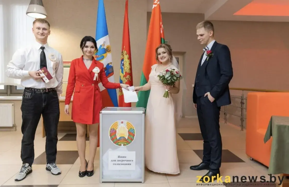 Але бывае самі выбаршчыкі дапамагаюць прыцягнуць увагу да выбараў. Такім чынам 25 лютага адразу некалькі сямейных пар адправіліся на выбарчыя ўчасткі пасля ЗАГСа, каб пакінуць галасы за сваіх кандыдатаў.