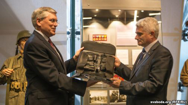 30 красавіка прадстаўнікі амбасады ЗША ў Беларусі на чале з часовым павераным у справах ЗША ў Беларусі Скотам Роландам перадалі падарункі Дзяржаўнаму музею Вялікай Айчыннай вайны ў Мінску. Гэта каштоўныя экспанаты — асабістыя рэчы амерыканскіх салдат і афіцэраў, якія ваявалі супраць нацыстаў. Сярод іх — набор афіцэра, запальнічка з артылерыйскага снараду, часопіс Life ад 6 чэрвеня 1942 года. А вось грузавік "Студэбекер" пакуль прывезці не ўдалося, інфармуе Радыё Свабода.