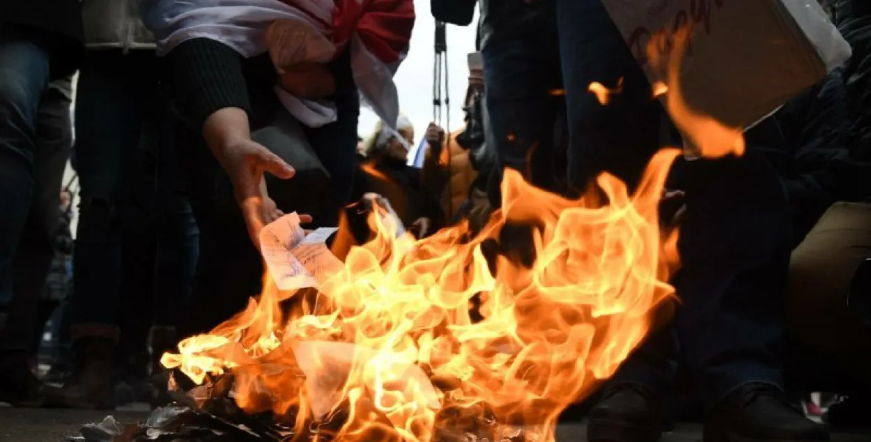 Кульмінацыяй мітынгу стала спаленне пасведчанняў сябраў ініцыятыўнай групы па зборы подпісаў за вылучэнне кандыдата.