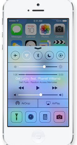 Асноўны экран iOS цяпер умее рэагаваць на нахілы апарата і адлюстроўвае адпаведную анімацыю. У склад сістэмы ўвайшоў "Цэнтр кіравання" — ён прадастаўляе доступ да найбольш папулярных настроек, уключае і выключае ліхтарык.