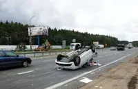 Пад Мінскам “Рэно” лёг на дах пасля сутыкнення з фурай