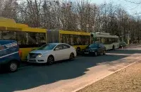 У Мінску сутыкнуліся аўтобус і тралейбус (фота)