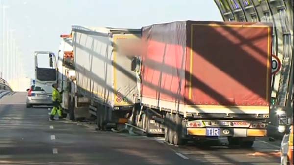 Аварыя ў Варшаве: сутыкнуліся фуры з Літвы і Беларусі (фота)