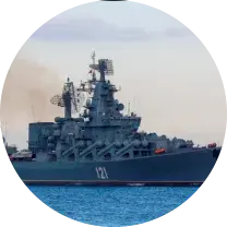 13 красавіка ўкраінскія ўлады паведамілі, што па крэйсеры "Масква" нанесены ўдар дзвюма ракетамі "Нептун". На наступны дзень Мінабароны Расіі заявіла, што на караблі адбыўся выбух, але гэта, нібыта, здэтанаваў боекамплект. Пазней з'явіліся паведамленні, быццам крэйсер патануў падчас шторму, калі яго буксіравалі ў Севастопаль.