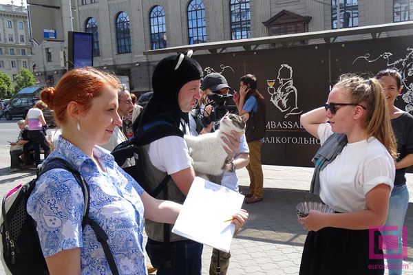 Ужо сыходзячы ад пікетоўцаў, раптоўна сустракаю “лятучы пікет” сяброў незарэгістраванай ініцыятыўнай групы ката Барсіка. Кіраўнік ініцыятыўнай групы Васіль Сямашка вельмі сур’ёзна распавядае, што подпісы ў падтрымку вылучэння Барсіка яны толькі пачалі збіраць і нічога смешнага пакуль з імі не здарылася — кандыдат жа сур’ёзны. Але амаль адразу чую ад адной з жанчын, да якой падыходзяць “кашачыя зборшчыкі”: “Вы ж свайму кандыдату па вяртанні дамоў абавязкова валяр’янкі наліце — стрэс агітацыйны зняць!” Праўда, подпіс пакідаць за ката адмаўляецца. Ну а вось я падпісаўся.