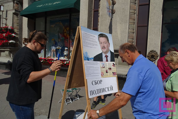 За дзейнага кіраўніка краіны подпісы збіраюць сябры Камуністычнай партыі Беларусі. Пад “сярпаста-малаткастым” чырвоным сцягам, у чырвоных камізэльках і кепках.