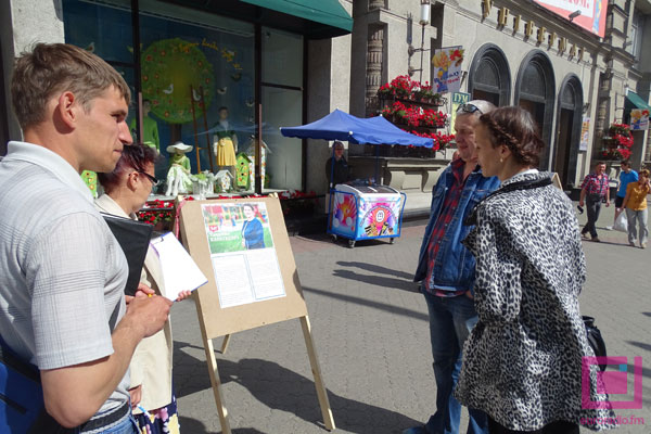 “Падышоў мужчына, — распавядае дзяўчына з бел-чырвона-белым сцягам на плячах, — доўга вывучаў наш стэнд, а потым пытаецца: “Ці не збіраецца Таццяна Караткевіч пасля таго, як стане прэзідэнтам, арганізоўваць Майдан?” Як вам такое? Здаецца ж, прэзідэнты не арганізоўваюць Майдан!”