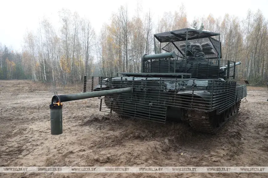 Беларускі ваенпрам паказаў мадэрнізаваны айчынны танк з незвычайным дэвайсам. Выглядае ён так: ззаду Т-72Б3 да маторнага адсека гарызантальна прыварана металічная труба, на якой вісіць печка-цыліндр. З яе падымаюцца языкі полымя.