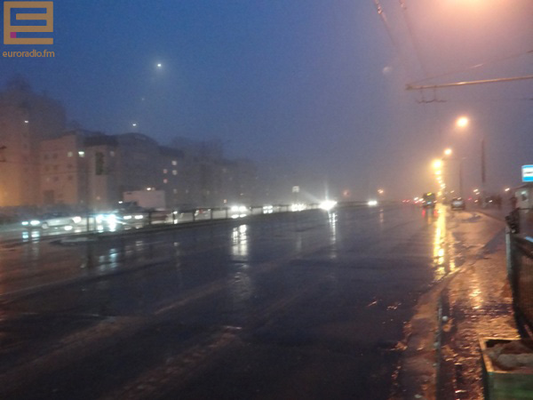 Увечары ў Брэсце каля аднаго градуса вышэй за нуль, імжыць дождж. Бачнасць на дарогах вагаецца каля 50 метраў.