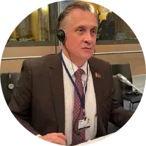 Украінскую дэлегацыю ў ПА АБСЕ ўзначальвае старшыня камітэта па пытаннях гуманітарнай і інфармацыйнай палітыкі Вярхоўнай Рады Мікіта Патураеў. Ён уваходзіць у фракцыю кіруючай партыі "Слуга народа".