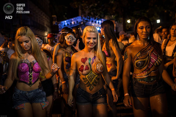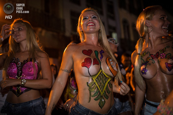 The most impatient started celebrating on the eve of the carnival like participants and viewers of the festival Banda-da-Rua-da-Merkada. The topless parade was accompanied by the sound of samba. Half-naked Brazilian women with body art on their breasts entertained the crowd of 50 thousand people, supercoolpics.com reports.