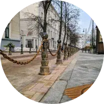 Almost all metallic elements installed in Kamsamolskaya Street (cast-iron columns, chains, storm drains and bench legs) became rusty in spring, Euroradio reported.