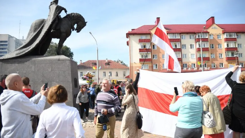 The ceremony was attended by the representatives of the region and city authorities as well as opposition activists. Both the official red-green flags and historical previously banned white-red-white flags could be seen next to each other during the launch.