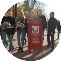 Dzyanis Mandzik, head of the Belarusian Popular Front Youth and Hanna Smilevich, the group's former leader protested against hazing in the Belarusian Army on Tuesday. The rally was part of the anti-hazing campaign ‘Ticket to Death’. The protest was disrupted by the riot police almost immediately. Arseniy Dzyadok was detained together with Mandzik and Smilevich but was let off on the same day because he is underage.