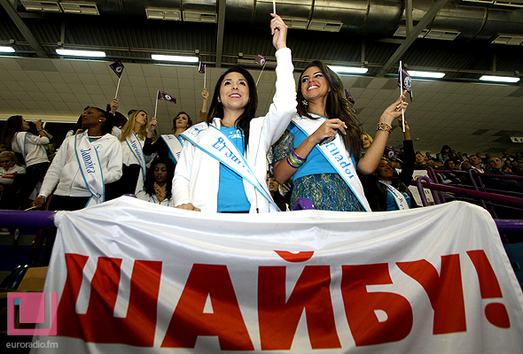Participants of the beauty contest attended the final game of Ruslan Salei Cup in the Ice Palace in Minsk.