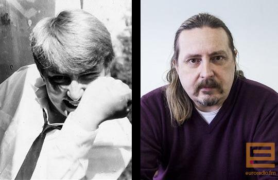 Lyavon Volski in 1993 (a shot from a video "I am a Rock Musician"", and in 2012, in Euroradio's studio.