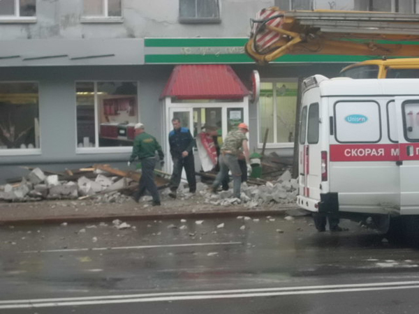 Local newspaper іntex-press.by reports a young man and two women were admitteed to a hospital after bricks and construction waste fell on them in Lenin Street.
