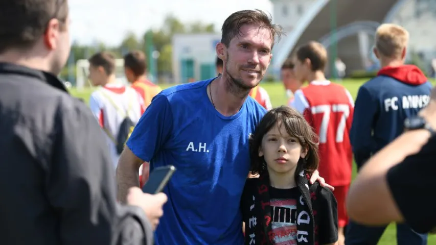 Пасля матчу зорка беларускага футболу ахвотна фатаграфаваўся з заўзятарамі і прымаў віншаванні з дэбютам у складзе "ваўкоў".