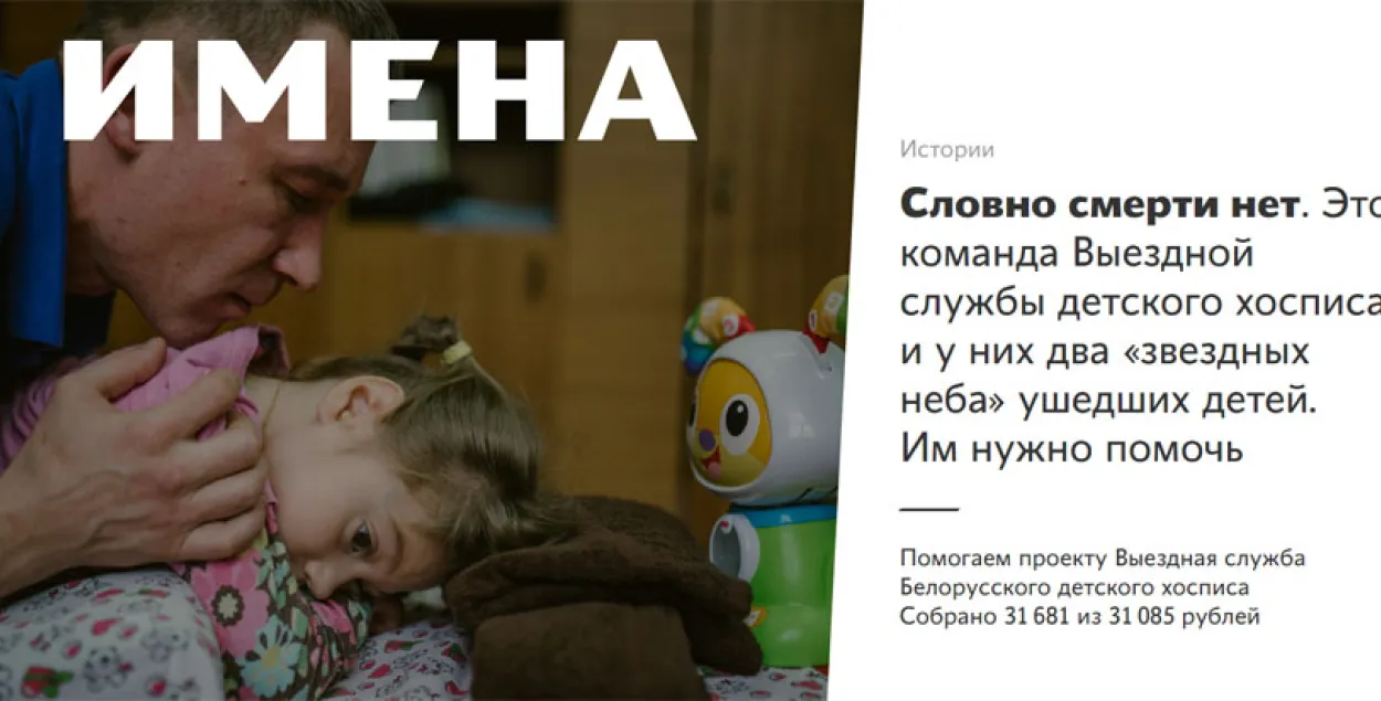 Онлайн-часопіс “Имена” існуе з 2016 года. За гэты час нам сталі вядомыя як трагічныя, так і гераічныя гісторыі жыцця не аднаго дзясятка беларусаў. Але ў сваіх матэрыялах журналісты не толькі распавядалі пра людзей ды сацыяльныя праблемы, што існуюць ў Беларусі, але і прапаноўвалі розныя варыянты дапамогі людзям ці рашэння абазначаных праблем.