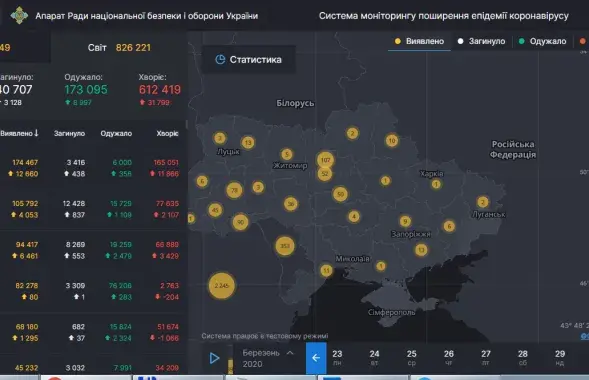 Ва Украіне зрабілі круты сайт са статыстыкай па COVID-19