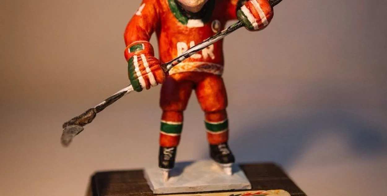 Статуэтка ўяўляе сабой чалавека ў форме хакеіста, у якога ў руках каса замест клюшкі. Чалавек з твару нагадвае кіраўніка Беларусі.
