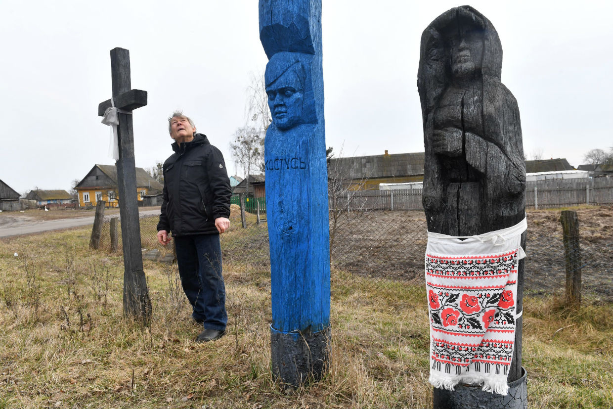 Але пераважаюць "класічныя" працы. Цяпер народны майстар на падворку свайго дома вырабляе сякерай скульптуру да 75-годдзя перамогі ў Другой сусветнай вайне.