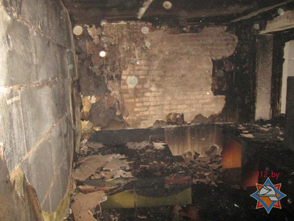 Агонь знішчыў маёмасць у кватэрыя, закураныя сцены і столь.