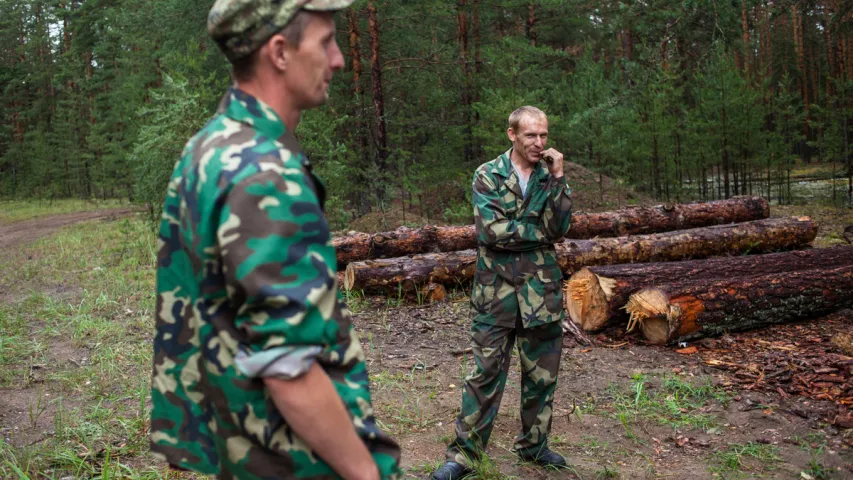 "Усе, Коля, нагаварыў ты сабе ўжо гадоў на пяць", ― жартуюць хлопцы з брыгады лесарубаў, пакуль мы размаўляем з іх начальнікам Мікалаем.