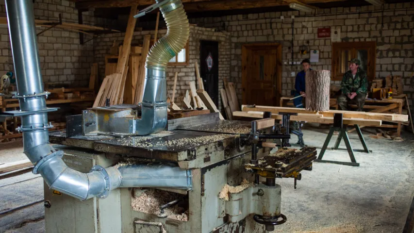 У Хойніках у запаведніку ёсць свая лесапільня, куды адпраўляецца ўся драўніна з зоны. У тым ліку і тая, якую складавалі на 63-м участку. Ля ўваходу на тэрыторыю ў прыгожых альтанках ляжаць ўзоры прадукцыі. Цэны падпісаныя, купіць можа любы жадаючы. Начальнік участка эксперыментальна-гаспадарчай дзейнасці запаведніка Мікалай Варанецкі з гонарам паказвае дрэваапрацоўчыя станкі, каля акна ляжаць фігурныя ножкі будучага крэсла, побач сушыцца вагонка з дуба. Мікалай з энтузіязмам распавядае пра планы на пашырэнне вытворчасці і закупку новых больш магутных станкоў.