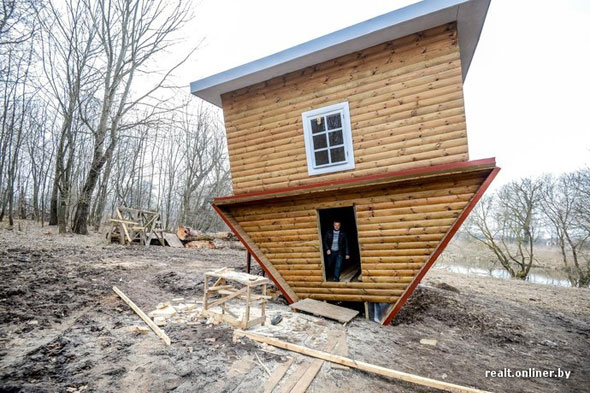 Пад Мінскам пабудавалі дом, перакулены дагары (фота)