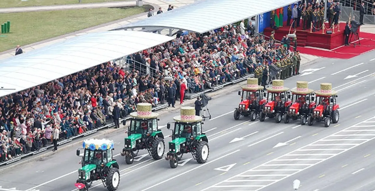 Парад на Дзень незалежнасці: танкі, трактары ў брылях, сасіскі і дываны
