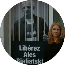 Нобелеўскі лаўрэат міру Алесь Бяляцкі за праваабарончую дзейнасць асуджаны беларускім рэжымам на 10 гадоў зняволення.