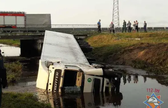 Кіроўца грузавіка аказаўся заблакаваны ў кабіне, яго вызвалілі ратавальнікі.