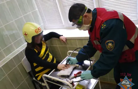 У яе моцна ацяклі рукі і яна не змагла самастойна зняць упрыгожання.