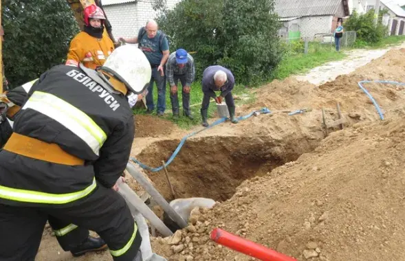 У Мядзеле ратавалі мужчыну, якога засыпала ў траншэі (фота)