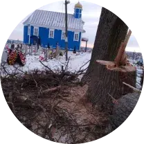 Директора дома культуры в деревне Охово на Пинщине Александра Демчука два раза судили за ”неповиновение требованию должностного лица". Сначала 23 декабря, когда он получил 15 суток административного ареста, после — 24 - го, когда дали ещё 15 суток. В чем вина директора? Он "мешал рабочим работать" — пилить 300-летние дубы. Демчук залез на одно из деревьев, но его с него сняли. После того как омоновцы забрали директора, дубы спилили.