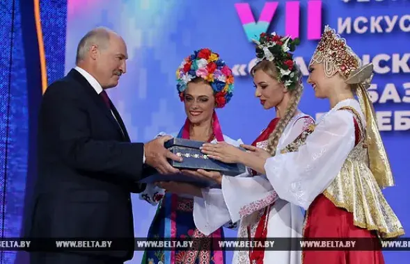 На "Славянском базаре" Лукашенко подарили пояс-оберег (фото)