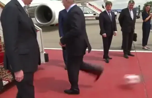 Случилось это во время его прилета на открытие чемпионата мира по футболу. Полное видео появилось только сейчас.