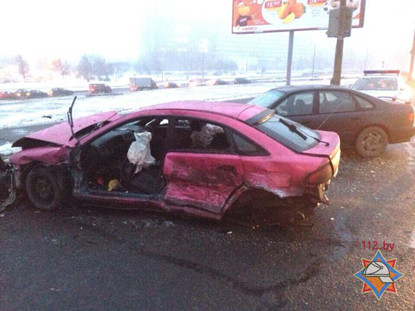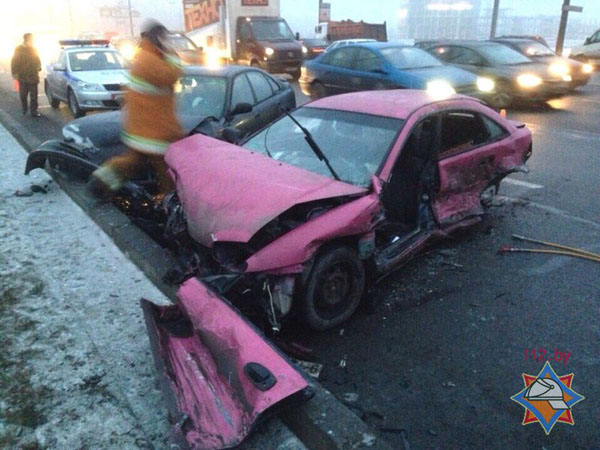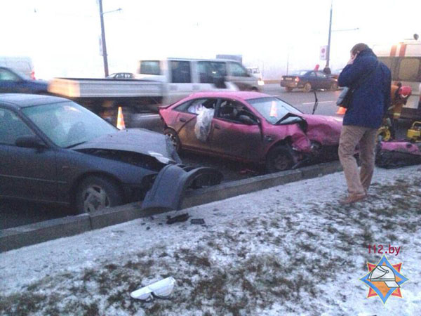 Сайт onliner.by отмечает, что все началось с того, что девушка на Volkswagen Passat, подрезала кроссовер Subaru Forester. Водитель последнего, уходя от удара, выехал на полосу встречного движения. Когда он возвращался назад, машину занесло, и она затронула автомобиль Mazda 323. 37-летний водитель последней легковушки (именно его после госпитализировали с травмами) потерял контроль над автомобилем, произошло столкновение с Mazda 626 и Volkswagen Passat. Mazda 323 выехала на встречную, где произошло столкновение с Honda Accord.