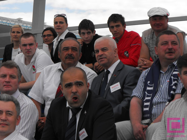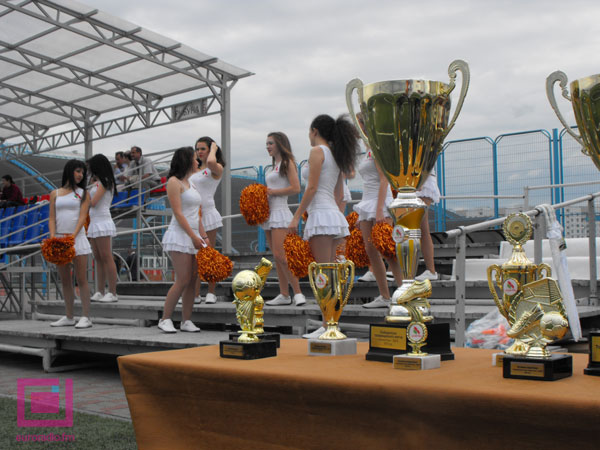 Футбольный матч организован был по всем правилам: на входе – ОМОН и столик с “дегустационными” йогуртами, неподалеку – автозак, у трибун – бутылки с бесплатной питьевой водой, на трибунах – “болельщики” по специальным пригласительным в “корпоративных” майках, куртках, кепках и с другой символикой, девушки-развлекательницы в коротких платьях.