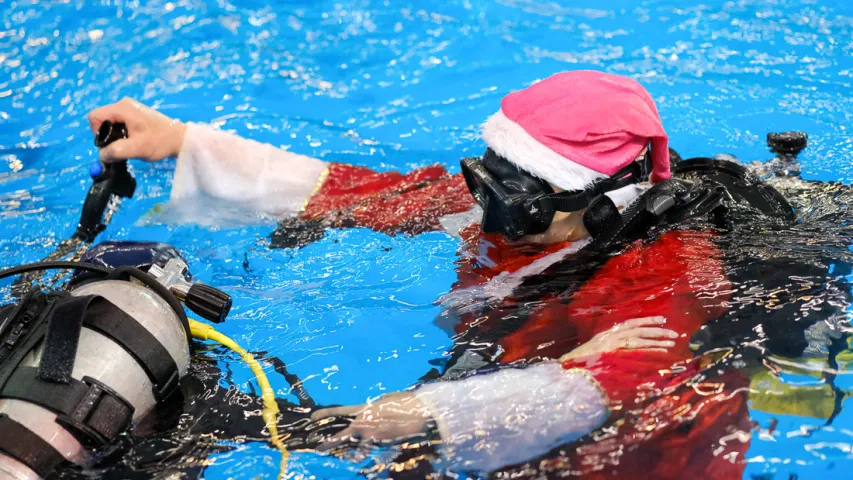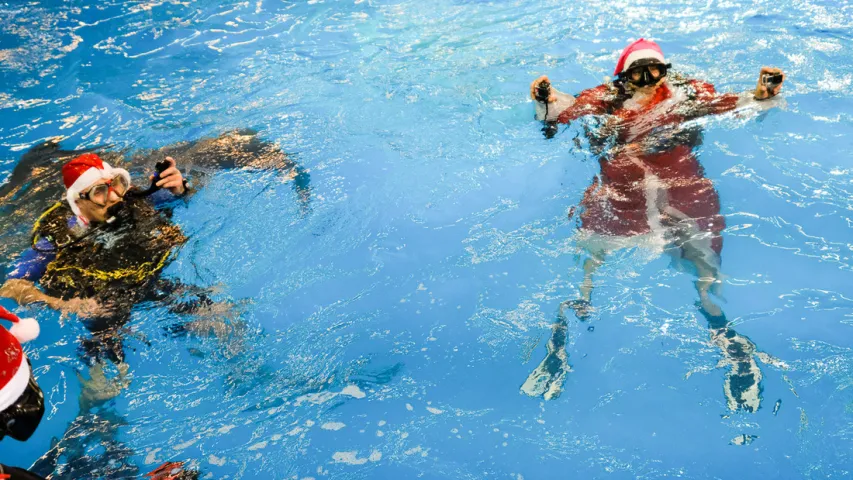 Белорусские дайверы встретили Рождество под водой. Как пишет Onliner.by, погода не позволила им в этом году спуститься на дно природных водоемов, поэтому решили устроить праздник в бассейне минского дельфинария "Немо".