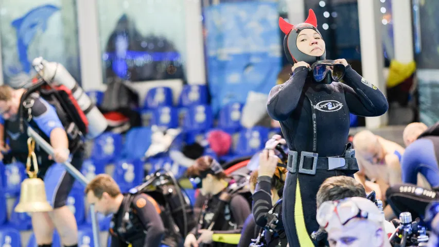 На полчаса любители нырять погрузились под воду, надев карнавальные костюмы. Там они даже водили хоровод вокруг елки. В мероприятии приняло участие около 30 человек.