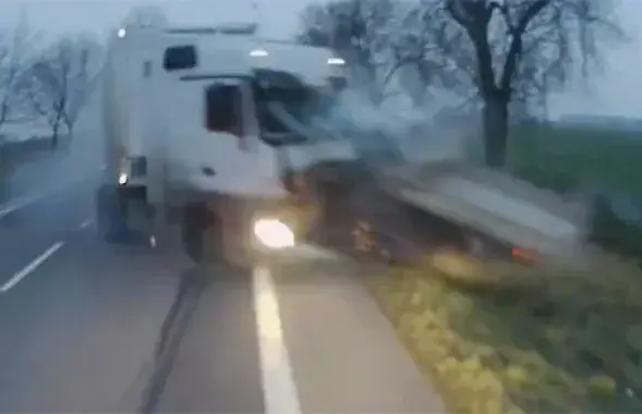 Белорусский водитель фуры столкнулся с российским экскаватором