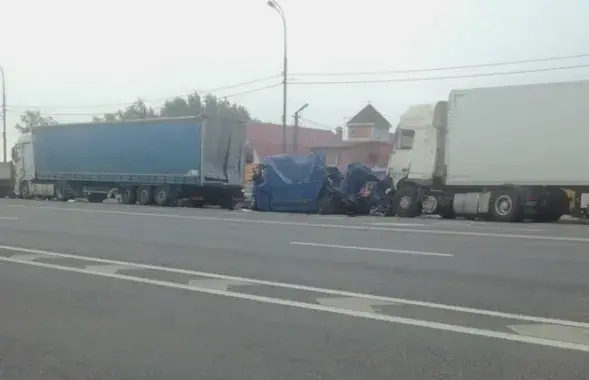 ДТП случилось в Сафонавском районе на 297-м километре трассы М1. Микроавтобус был зажат между фурами.