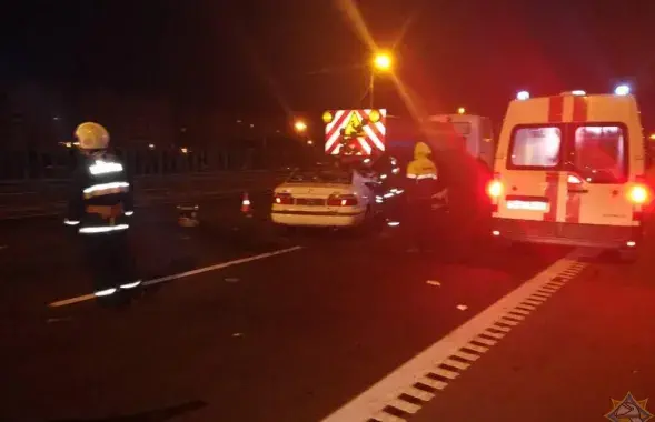 Ночью на МКАД "Мазда" столкнулась с машиной дорожников (фото)