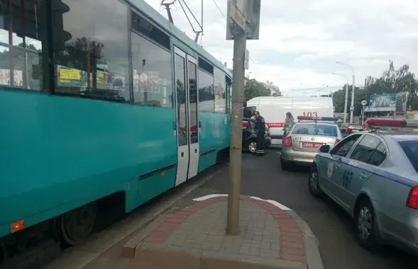 В Минске 49-летняя водитель Volkswagen Polo не пропустила трамвай (фотофакт)