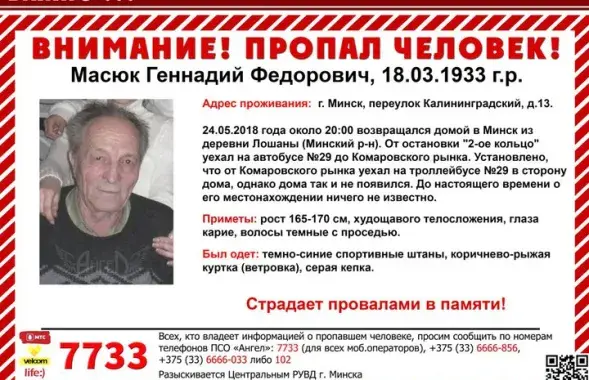 В Минске нашли 85-летнего мужчину, пропавшего несколько дней назад