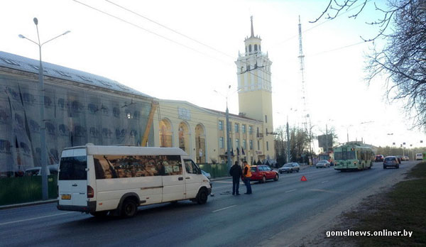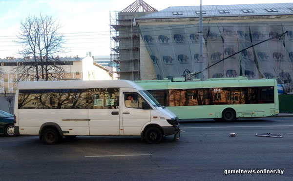 Фотофакт: Сегодня утром в Гомеле маршрутка столкнулась с троллейбусом