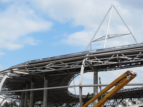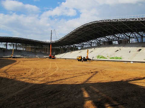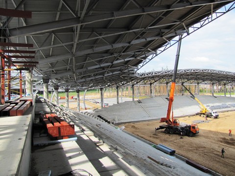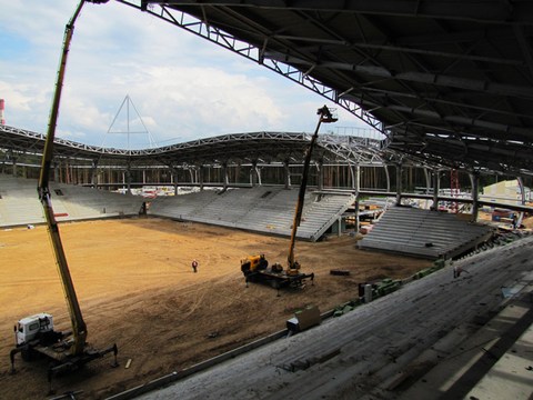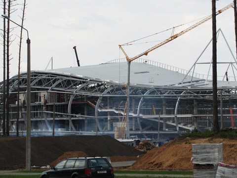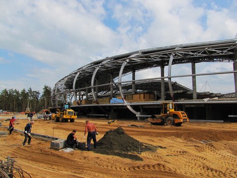 Строительство должно быть завершено этим летом. Работы на объекте идут почти круглые сутки, отмечает газета "Прессбол", журналисты которой сделали фото- и видеорепортаж со стройки.